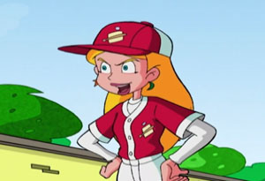 When game time arrives, Sabrina and Gem review their starting lineup. Gem’s best players are there, while several of the lesser players of Sabrina’s team still remain on the bench. Sabrina remembers the words of Uncle Quigley, about a manager’s job being to determine the pkayers’ hidden strengths. Sabrina asks one boy, a math nerd, for an instant calculation of where a ball will land if hit by a player of such and such height and weight when pitched at X miles per hour. Within seconds, he has a precise location. She asks another shorty just how small he can make himself at the plate. “Pretty darn small”, he responds. Sabrina substitutes the two in place of two of Gem’s jocks, though Gen thinks she’s crazy. The two turn out to give the team a surprise edge the monsters have not faced before. The little player pulls the old can’t-find-the-strike-zone trick, compressing himself at the plate to where he seems to fit entirely inside his batting helmet. The nerd pulls out a slide rule, takes eye measurements of the batters, and is always under the high flies to make the outs. Harvey performs up to his best potential, contributing some key hits and decent pitching, and just plain happy at being off the bench. Salem distracts the werewolf outfielder, by tossing a stick, which the wolf runs to retrieve like a dog instead of catching the baseball. It comes down to needing a final out, facing Frankenstein at bat. To the math nerd’s surprise, Frankenstein tosses his regulation bat away, and chooses one twice its size. “This throws off all my calculations”, states the startled nerd, whipping out his pencil and slide rule to jot down a whole column of new figures. The revised totals indicate the ball will be over the fence! As Frankenstein swings, four of Sabrina’s players climb atop each other’s shoulders at the fence, with the nerd kid on top. The human column wobbles, but is in the right place according to the calculations. The ball lands in the nerd’s mitt, but the column topples to the ground. Everyone waits until the dust clears – to find the nerd still holding onto the ball in his glove. Realizing the game is up, the vampire makes a half-hearted attempt to change the wager, remarking, “Best two out of three?”, but is quickly zapped out of existence on this plane, along with his fellow teammates, as he shouts, “Curse you, Sabrina Spellman!” Sabrina and the others realize they finally had fun – something they hadn’t experienced in a long, long time, and Sabrina wishes she had figured out her proper managing role before the Summer ran out. But then, there’s basketball season coming up, and Sabrina also thinks she’s figured out what went wrong with her past spells… Dream on.