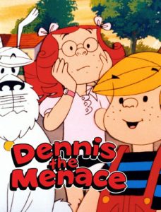 Baseball’s Best Ballplayer (DIC, Dennis the Menace, 11/17/86) – A fairly brief story, as Dennis scores the winning run in a kiddie league game, and imagines what it must be like to hear the resounding cheers of a stadium full of rabid fans, though there seems to be no one in attendance to root for him in this game. The other kids stampede off the field when the Coach suggests they end the day with some lunch. Brushing off the dust tracks made by the kids’ shoes upon his uniform, the Coach asks Dennis, the last on the field, if he has the energy to put the equipment away in a shed. Dennis claims a big leaguer always has plenty of energy. But no sooner has he carried the bat bag into the shed, than a vacant chair inside the shed looks so relaxing. Dennis seats himself, yawns, and stares for a few moments at a wall covered with photos of big league ballplayers. As his eyelids droop, Dennis begins to imagine what it must be like to be a star just like them. We are suddenly transported into Dennis’s dream world, where Dennis plays center field in a game of the World Series, on a team helmed by his father on the pitcher’s mound, with Ruff acting as bat boy, and Joey as a rooting fan in the stands seeking his autograph. On the opposing side, of all people, bats Mr. Wilson, who is robbed of a home run by Dennis’s leaping catch. The sides change, and Dennis is sent to bat, his Dad stating that he’s bet his lunch money upon the team winning this game, and needs a deciding run from Dennis. (Now there’s a bad family influence – his own Dad placing an illegal bet on the game?) Dennis waits for a good pitch, but gets ones obviously too high and too low from Mr. Wilson on the pitcher’s mound. When Dennis challenges the calls, he finds the umpire to also be another Mr. Wilson – and so is the catcher! Dennis wonders if he didn’t notice being beaned – otherwise, why is he seeing triple? But, without further complication, Dennis bears down under the pressure, and hits one out of the park. Dennis is picked up and tossed repeatedly in the air by his teammates, who chant his name repeatedly. The cheers dwindle to one voice – that of Dennis’s coach, who awakens Dennis from his slumber, informing him that he missed lunch. Dennis asks, “Where are all my fans?” “Fans?”, replies the coach. “What do you think, you just won the World Series? Must be nice to dream.” The Coach leaves the shed, and Dennis rises to follow – but not before turning to the pictures on the wall, and doffing his cap to them as if his audience, then leaving the shed for home.