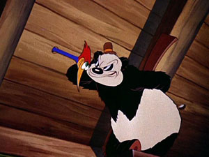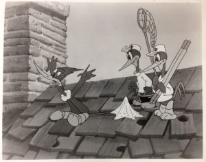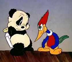 “Guess Who?!?” That’s what a woodpecker who is pestering Andy Panda and his Papa shouts when he bursts through the roof of their house in the 1940 short subject, Knock Knock.