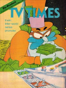 Simply to fill, things get rather random in the middle, with a chance meeting with Harriet Tubman (who compares the travel of their time machine to an “underground railroad”), and an extended side-trip by miscalculation to Transylvania to meet Count Dracula, whose Igor confiscates the phone booth as a new coffin bed for Dracula, but meets with disapproval from his master when the phone’s incessant ringing keeps te vampire awake all day. Finally, our heroes get around to reaching Yankee Stadium, where they are (as indicated by the episode’s title) shocked to learn that the “Babe” they were seeking is really a dude. Babe is cordial with them in a brief meeting in the locker room behind the dugout, but is unable to take a time out to autograph a new baseball for them, as he is being called out to bat in a game in progress. Instead, he hands them a pre-autographed photo from his pocket, and steps out onto the field, promising to hit a home run for them. The boys don’t get to stick around long, when they show their faces in front of the dugout, and are spotted by a stadium cop, who inquires for their tickets. All the boys can show him is ticket stubs from the future for a rock concert. The boys thus get tossed out of the main gate. They bemoan their bad lick, and seem to have no concept of the worth of the autographed photo they were given. They meet outside the stadium a depressed parking-lot vendor, wheeling a wagon of some pink stuff that at first looks like cotton candy, but is much more viscous and chewy. The vendor can’t seem to sell the stuff, and doesn’t even have a catchy name for it. The boys sample the product, and instantly realize the vendor has invented bubble gum. They pay for some by trading the vendor the autographed photo. The vendor realizes that if he were to include such photos along with his new sticky invention, the product would sell like hot cakes. And so, the baseball card is born.