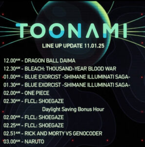 The post Toonami Schedule Update (October-November 2025): Halloween Uzumaki, FLCL Shoegaze Marathons, More! appeared first on Anime Superhero News.