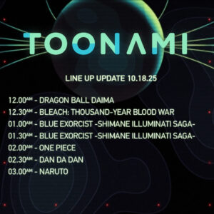 At 12:30 Bleach: The Thousand Year Blood War – the Separation airs in a new earlier time slot. Toonami stopped advertising Bleach when it moved to 1:00 AM, in favor of 12:30’s Dan Da Dan receiving promos. Dan Da Dan premieres have concluded on October 11. Toonami is currently is promoting only Daima, not Bleach.