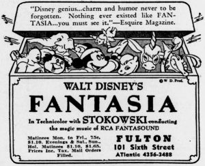Walt wanted Fantasia treated less like a film and more like a concert. The film was distributed as a “roadshow attraction” (released to a limited number of theaters for a specific period), with an intermission. It was released in “Fantasound” (a pioneering version of today’s surround sound), and programs were provided.