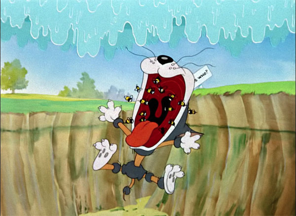 The first cartoon that casts Tom as not a housecat but a regular “human” funny animal character, out playing the worst game of golf with Jerry as his shanghaied caddy. Noteworthy for the savage gag (animated by Ken Muse) of Tom getting a swarm of bees stinging his throat in a manner that’s both horrifying and hilarious.