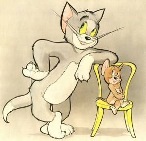 The one that started it all, the Hanna-Barbera cartoon empire included. (Although a lot of people felt something was owed to Rudy Ising for making it happen, Ising himself included.) The cat’s called Jasper, and if he breaks one more thing, he’s going “o-w-t, out!” The mouse, unnamed, sees to it that that happens. The specificity of the acting and timing (and slapstick violence) made it stand out enough for an Oscar nomination, cementing the success of the Hanna-Barbera unit, which, after making a number of insufferable cat-and-mouse-less cartoons, would make almost nothing but cat-and-mouse cartoons for 17 years.