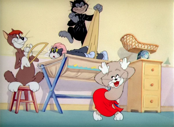 Tom suffers humiliation dressed as a baby doll at the hands of a bratty girl, Jerry, and his alley cat chums (two of them, Butch and Topsy, in their first appearance). Maybe the most “queer” coded entry in the series, they certainly didn’t make one like this ever again.