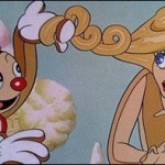 Somewhere in this flurry of mini-re-creations of the Book of Genesis, someone envisioned a brand-new domain – the kingdom of candy. The idea seemed to spread like wildfire, with most of the major studios getting into the act within a short few years of one another. However, the then-popularity of a particular type of candy, usually relegated these days to only the Christmas season, but then the kind of thing one might find year-round in any corner confectionary store where regional or hand-made treats were displayed, caused the animation industry no end of trouble. The peppermint stick, or what we conventionally refer to today as the “candy cane”. This goodie was always traditionally identified by a unique design – a spiral stripe, most often in red, layered continuously around the cylindrical column of the confection (sometimes as a straight stick, sometimes curved into a hook to allow for hanging of the treat upon a Christmas tree limb). While the stripe wasn’t a necessary component to the item’s flavor (and usually washed-off entirely after a few licks), it was the only way a film-viewing audience would be able to discern that they were looking at something sweet and a bit tangy, rather than at the bare white of a blind-man’s cane. Thus, the task befell animators to duplicate this striped trademark in order to convey their fantastic visions. This led to quite a lot of what the industry would call “pencil mileage” in creating the arduous number of drawings necessary for a fully animated film – and also to an awful lot of problems in the ink and paint division.