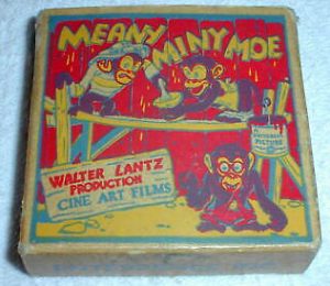 Now that Carl Laemmle and his big “Femily” (as put by Ogden Nash) had left for greener pastures, the people that the bankers had put in charge of Universal’s various departments went along pretty steady. In the cartoon field, Oswald had survived his transition from black rabbit to white rabbit. Lantz was meanwhile trying to come up with a second series that would gain popularity, and put a great deal of effort into the monkeys Meany, Miny, and Moe. The monkeys were now differentiated, having identifying wardrobes and developing individual characteristics. They were often placed in situations closely resembling the Three Stooges, including as golfers, steel workers, stevedores, etc.