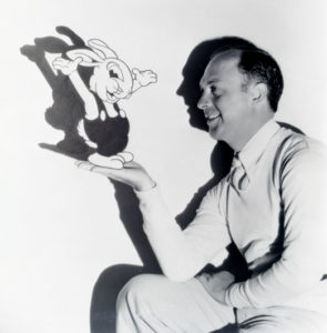 Everybody Sings (2/22/37) – Welcome to Birdville, where all the modern amenities exist for our feathered friends. And there’s even employment for a rabbit – Oswald, that is, leading his Rhythm Boys at a Birdville dance hall. The hall also features a trio of “chorus gulls”, chiming in on the title number of the picture, an original with lyric by Frank Loesser and melody by Irving Actman. Half the film is a musicale, while the second half focuses on “Three Black Crows”, who sing their own original introductory number, stating their motto of taking whatever they see that they like. The crows raid the town, grabbing every valuable in sight, and finally crash the night club, knocking Oswald out the window in battering-ram style. Oswald returns inside a scarecrow, and scares two of the crows off, but the third sees through his disguise. A pair of birds from Oswald’s band finally capture the crow by hooking him to the end of a player piano roll and reeling him in. The film simply ends with a sign reading, “Yoy are now leaving Birdville.”