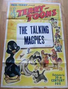 Eventually, the identical magpies would evolve into a different mischievous pair, one with a British accent, one with a note of New York in his voice. Still, they were different in their debut, The Talking Magpies, from Paul Terry’s Terrytoons, which was released eighty years ago this week on January 4, 1946, and featured a prototype for what would eventually become Heckle and Jeckle.