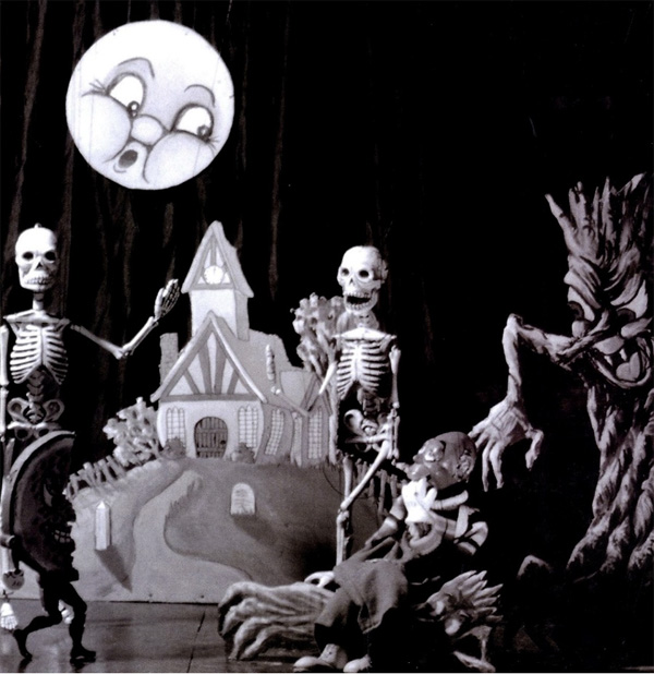 A young Ray Harryhausen was also taken by the film and made puppets of the characters, as seen in this one he made in 1939. He was fascinated by how skeletons could fly apart. Because of this, he made these puppets able to do this on stage.