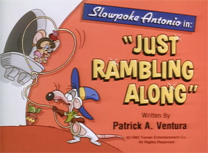 Just Rambling Along (from “The Tom and Jerry Kids Show”, 10/31/92) – Mice have large families. (For example, witness, all those cousins of Herman the Mouse we knew for years at Famous.) We’ve been introduced to Jerry the Mouse’s cousins and uncles since 1951. His family further expanded in the Tom and Jerry Kids Show with the introduction of Slowpoke Antonio – a character who seemed to descend (or steal) in equal parts from Jerry’s Uncle Pecos (“Pecos Pest”), and Speedy Gonzales’s cousin Slowpoke Rodriguez (“Mexicali Shmoes”/“Mexican Boarders”). What, cross-pollination between the products of two rival studios? Next thing you know, some genealogist will find a direct bloodline link between Jerry and Pixie and Dixie!